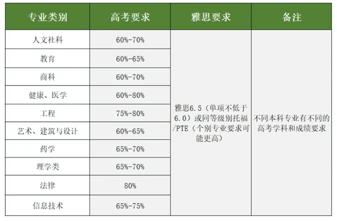 · 药学、护理、教育全球领先,工程、IT法律与商科注重实践