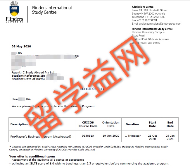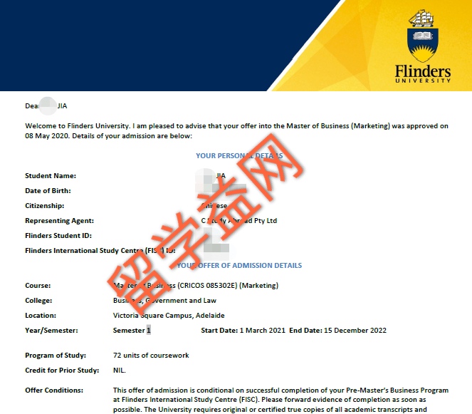 贾同学喜获弗林德斯大学市场营销专升硕打包录取通知书