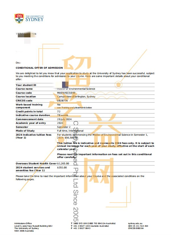 恭喜天津孙同学获得了澳大利亚悉尼大学(The University of Sydney)1.5 年制(Master of Environment Science)环境科学硕士 conditional offer!