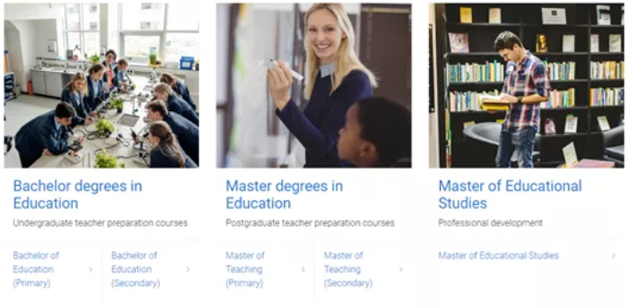 如果你的目标是成为学科老师,去中小学教授数学、科学、英语、体育等,那么可以考虑昆士兰大学的教师专业本硕士课程。昆士兰大学教育学院开设有4年制Bachelor of Education (Primary)小学教师本科,4年制Bachelor of Education (Secondary)中学教师本科,2年制Master of Teaching-Primary小学教师硕士,和2年制Master of Teaching-Secondary中学教师硕士。教师专业的学生毕业后可以获得澳洲教师资格证,在澳洲当地的中小学任教。由于昆士兰大学的教师专业对申请人的雅思要求较高(总分7.5,口语听力8,写作阅读7)且不能配语言直升班,这里就不详细说明了。如果你对这几个课程感兴趣,欢迎联系我们留学益网的顾问老师们详细咨询: